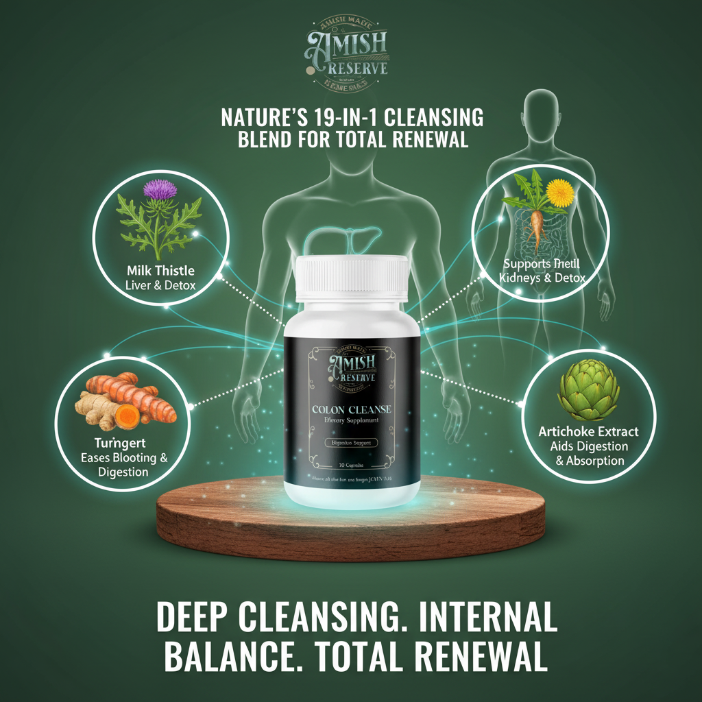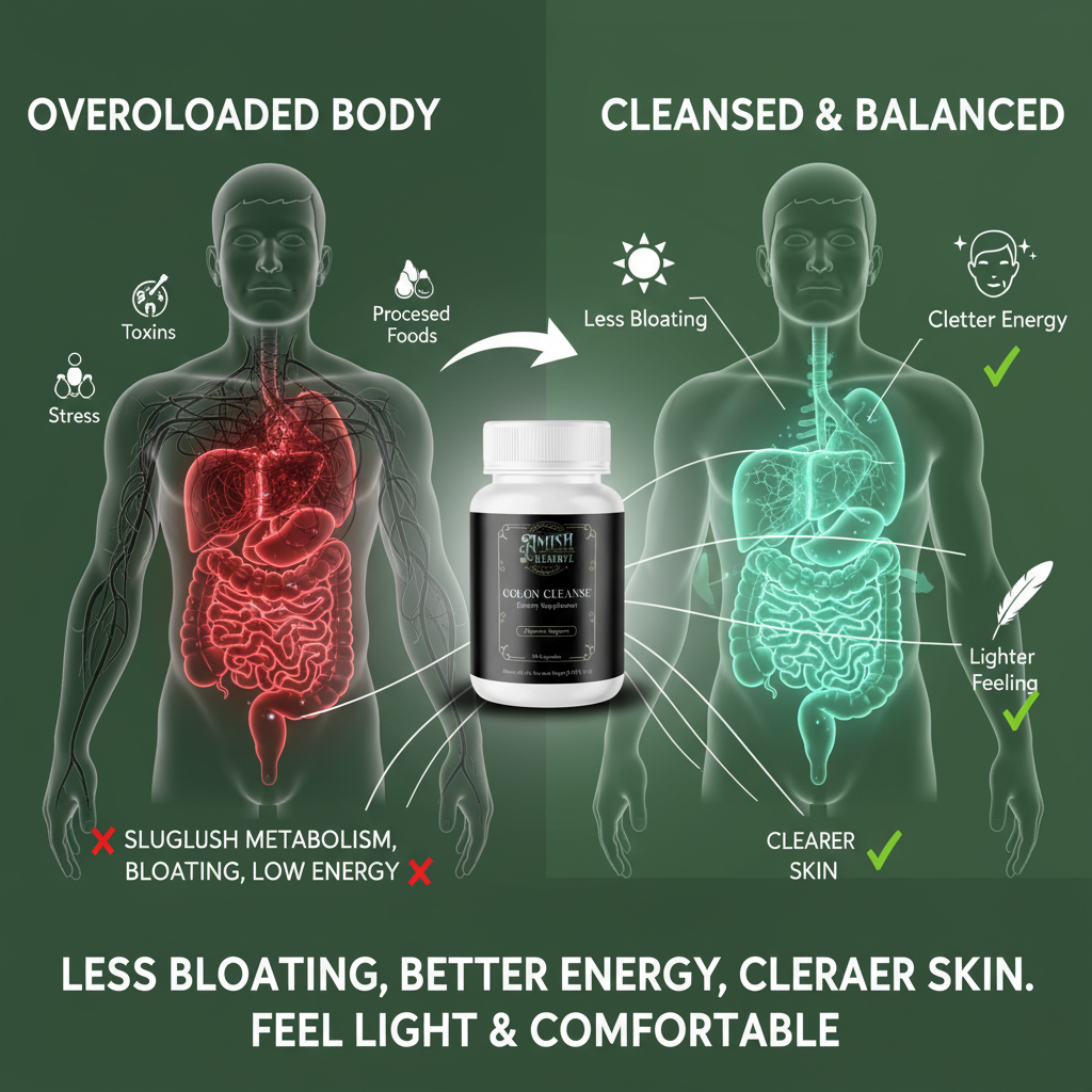 Colon Cleanse is a complete 19-in-1 detox supplement that helps your body eliminate toxins, improve digestion, and boost overall energy.